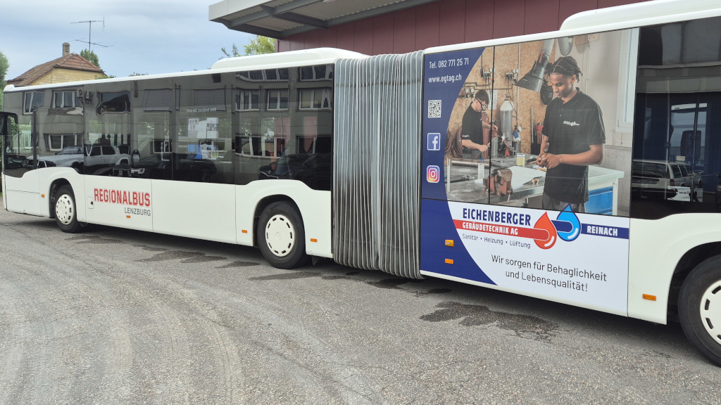 Seit letzter Woche ist unsere neuste Werbung seitlich auf dem Regionalbus Nr. 444 in Lenzburg zu sehen.